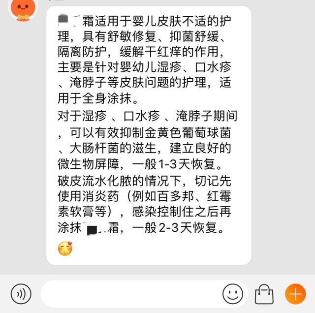 不过,记者调查发现,顶着“消字号”却大肆鼓吹疗效的情况并非个例。在电商平台上,另一款由某医药科技有限公司生产的婴幼儿肌肤护理霜也标榜可以“舒缓止痒、重建屏障”。客服进一步解释,称产品“主要针对婴幼儿湿疹、口水疹、淹脖子等皮肤问题的护理,适用于全身涂抹,一般1到3天恢复。”而关于批号,对方也迅速给出“闽卫消字”的答复。