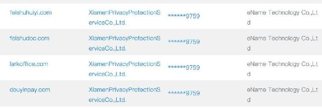 去年11 月,字节跳动申请了 “doupay”商标,其常用来存储域名的注册商 “易名”旗下还新增名为 douyinpay.com 的域名。