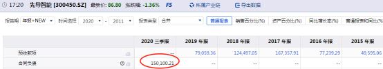 2018年、2019年,先导智能预收账款连续两年回落,公司的股价表现基本是跟随大盘趋势或者新能源汽车板块表现,而2020年中报之后公司股价出现加速上涨。公司的股价走强其中因素跟公司预收账款回升有很大关系,2020年三季报显示公司合同负债15亿元,接近了2017年高峰16.7亿元。