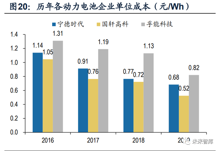 2015年以来国内新能源汽车市场蓬勃发展,规模效应叠加市场竞争推动的降本 增效,动力电池价格大幅下探。根据BNEF统计,2019年电池包价格156美元/kWh, 5年内下降73%。随着技术进步、下游应用扩张、产业链布局趋于完善,各电池企业 的生产成本也在不断下降