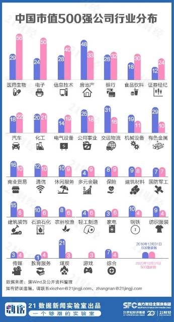 另外,21世纪经济报道近日发布了最新的中国上市公司市值500强榜单。