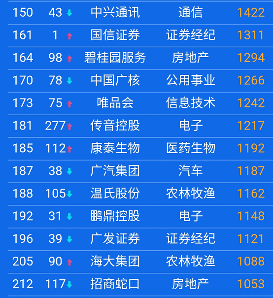 央企中国移动、中国石油位居前十。中国人寿位列第五。