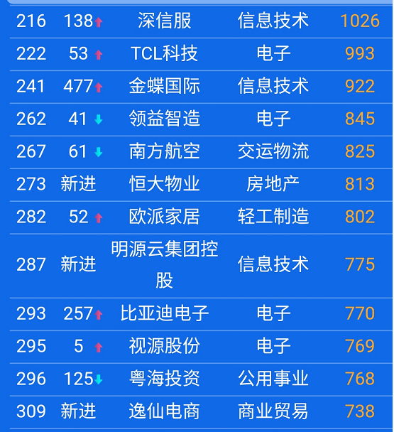 这说明深圳的龙头企业主要集中在金融、电子信息两大类别。