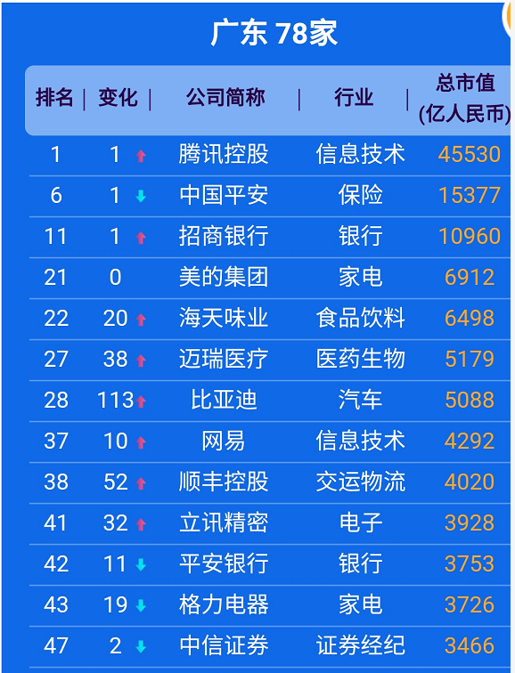 附:广东78家企业上榜市值500强