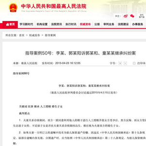 该指导案例中,郭某和妻子李某双方一致同意利用他人的精子进行人工授精并使女方受孕后,男方郭某得知自己得了绝症后反悔,而女方坚持生出该子女。男方在医院立下遗嘱,遗嘱中声明他不要这个人工授精生下的孩子,并将房屋赠与自己父母。