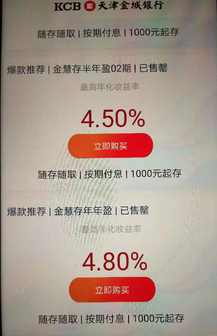 多款存款产品年化利率4.5%以上