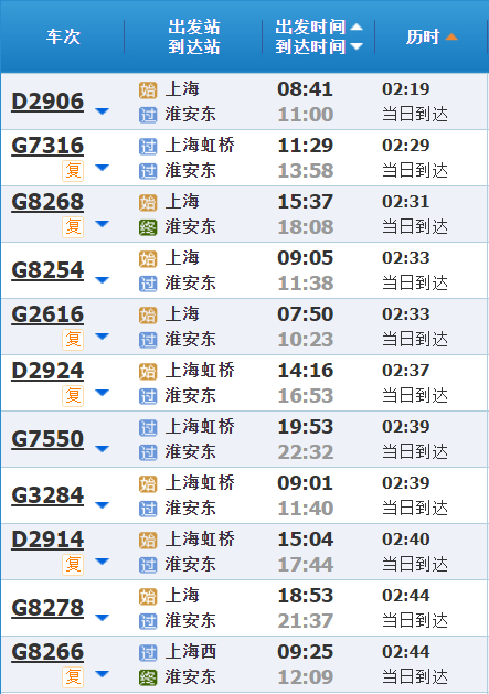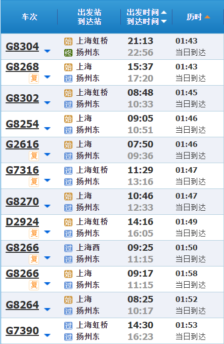 从上海出发,1小时内就能到苏州、无锡、常州、镇江、南京、嘉兴、海宁、杭州等地;2小时内即抵扬州、金华、宁波、湖州等;3小时内可到连云港、蚌埠、衢州、淮安、徐州、芜湖等;9小时内可到贵阳……