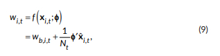 其中 表示基准权重,φ是通过效用最大化估计的系数矢量, 表示标准化因子特征。公式9中的参数化隐式假定这些特征完全捕获了资产收益率的联合分布。