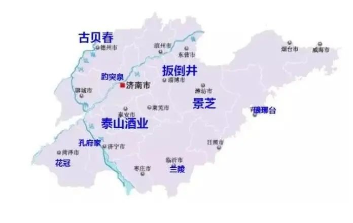 图:山东地产酒竞争高度分散,基本每个地级市都有地产品牌