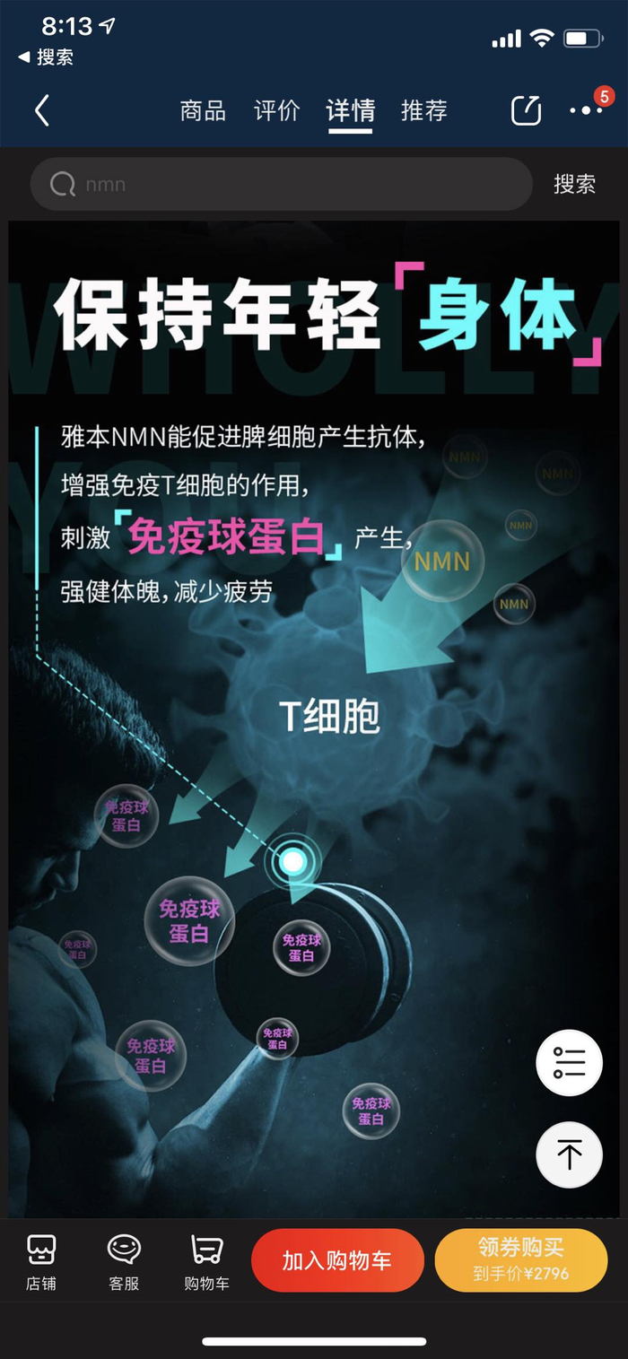 可见的是,虽然NMN仅作为“膳食补充剂”,且并无人体试验证据证明服用NMN可以起到延缓衰老的作用,部分商家在宣传NMN产品的功能时不遗余力。
