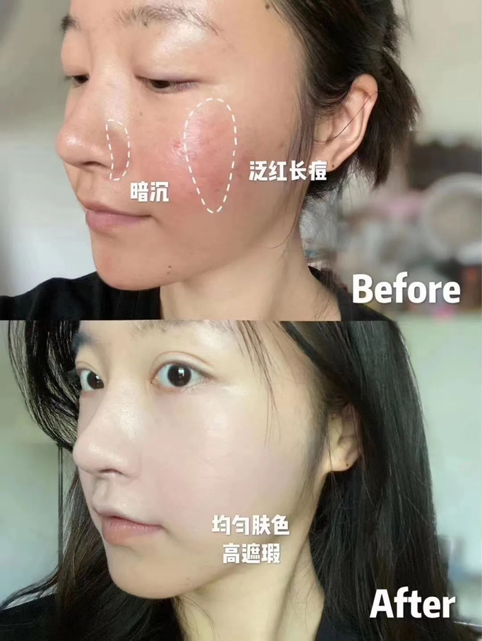 同时它的遮瑕力也非常强,不论是一些斑点黑眼圈,还是毛孔痘痘,都能轻松遮盖~