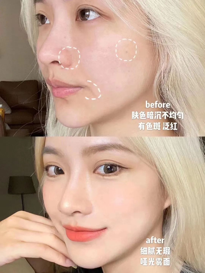 上妆后也完全不觉得厚重,非常服帖,肌肤看起来通透白皙,就像是天生拥有好皮肤一样~