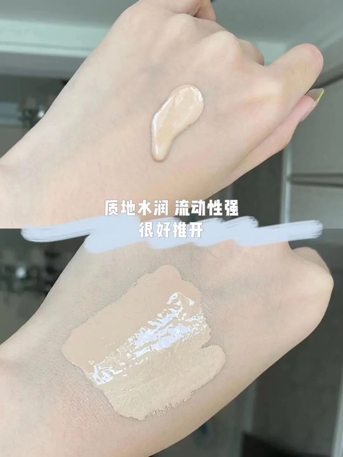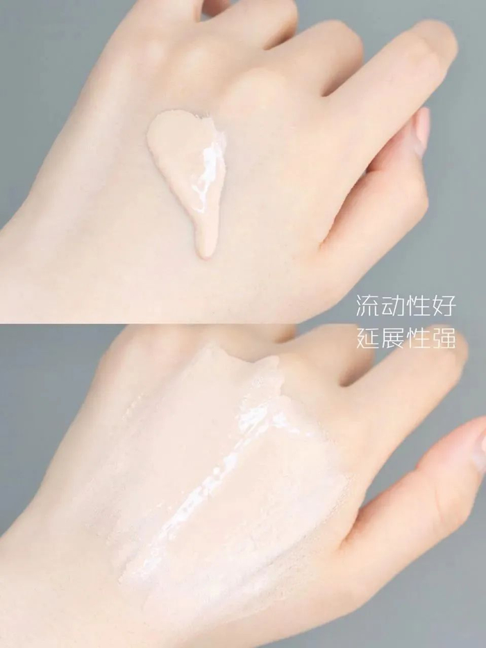 它的流动性和延展性也非常不错,上妆的时候很容易推开。只需要硬币大小的量,就能完成全脸的底妆~