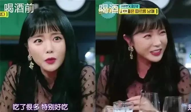 在一次综艺节目中,喝了一杯酒的她全身通红,但是妆容却纹丝不动,依旧白皙透亮。