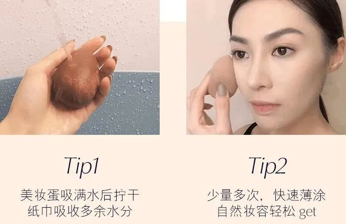 如果是面部瑕疵较多的小伙伴,可以用美妆蛋少量多次进行上妆。