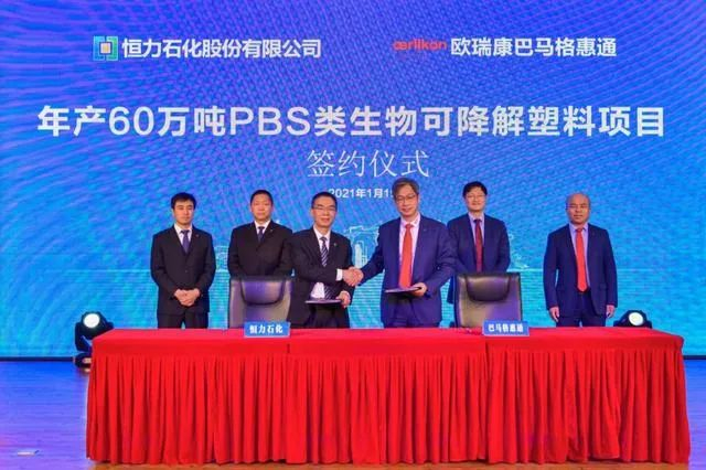1月19日,恒力石化股份有限公司(以下简称“恒力石化”)子公司营口康辉石化有限公司(以下简称“康辉石化”)年产60万吨PBS类生物可降解塑料项目正式签约,标志着国内规模最大、产能最高的可降解新材料项目在恒力落户。