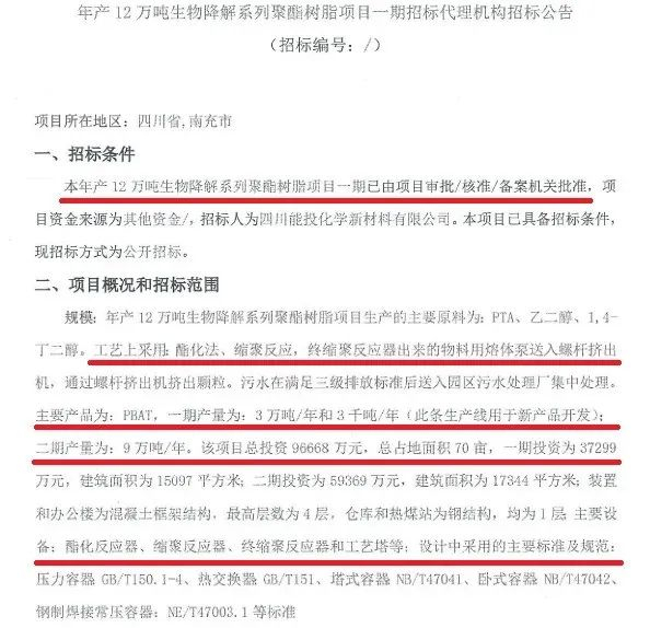 7.四川能投化学新材料年产12万吨生物降解系列一期发布招标公告