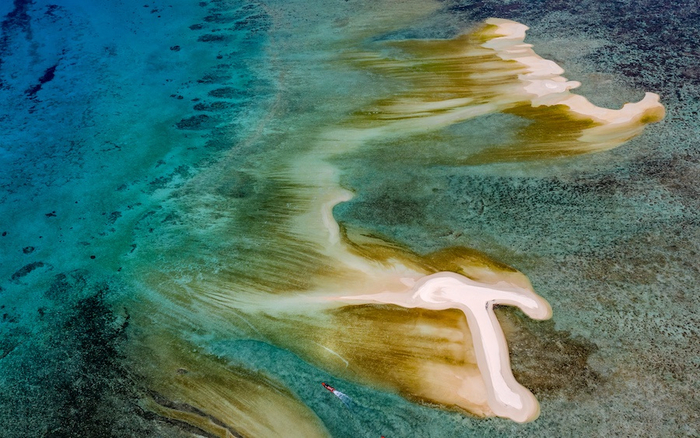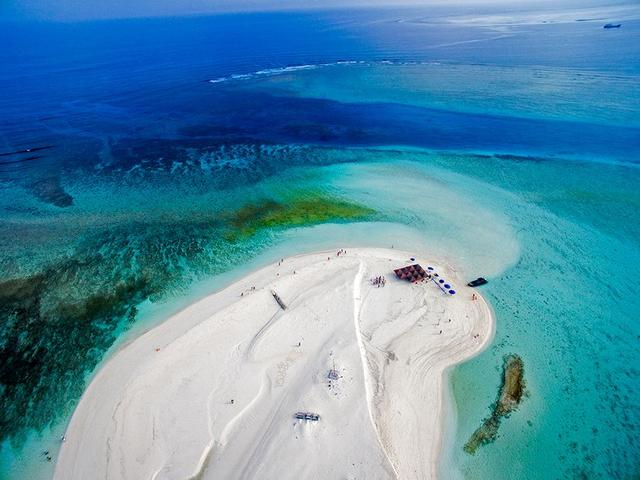 因为水位不同,岛的形状都会变化。 视觉中国岛上无植被和淡水,全是细软的海沙,岛礁的深浅不一也导致海水呈现出不一样的色彩,就像《富饶的西沙群岛》中描写的那样——“有深蓝的,淡青的,浅绿的,杏黄的。一块块,一条条,相互交错着。因为海底高低不平,有山崖,有峡谷,海水有深有浅,从海面看,色彩就不同了”。