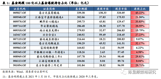 在《南下投资正当时》报告中,我们提出公募基金是南下主力,并从 A 股抱团公司筹码交换、明星基金净值变化、新发港股基金热销等角度分析南下资金来源。