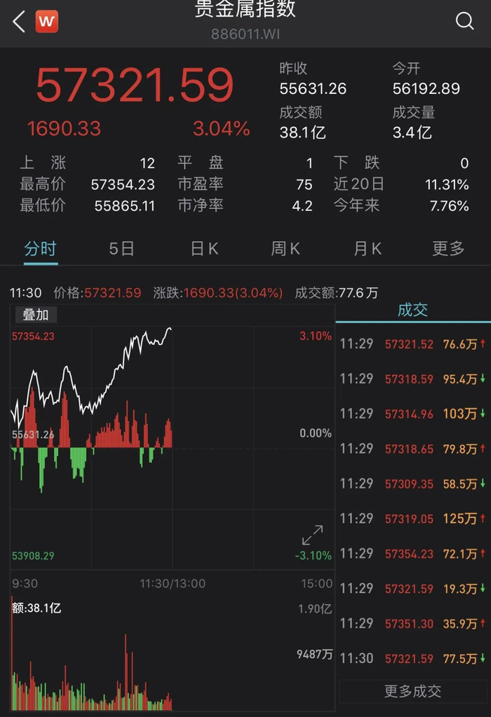 此外,当日A股市场也涌现出不少亮点。板块方面,稀土板块继前一交易日大涨后全面爆发,金属板块表现不俗,贵金属、小金属股普涨。在乐观情绪推动下,11:00之后,券商板块也强势拉升。