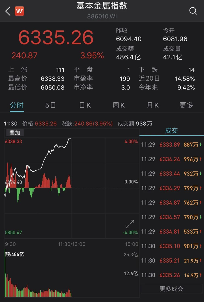 除稀土概念股外,基本金属、贵金属等概念股也表现强势。部分券商股从11点以后也持续发力。
