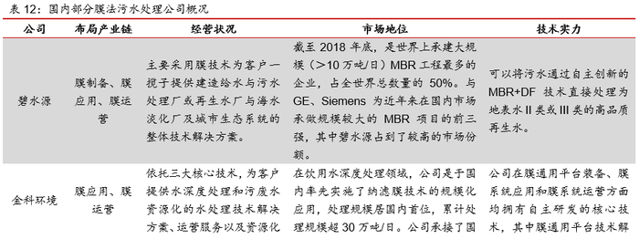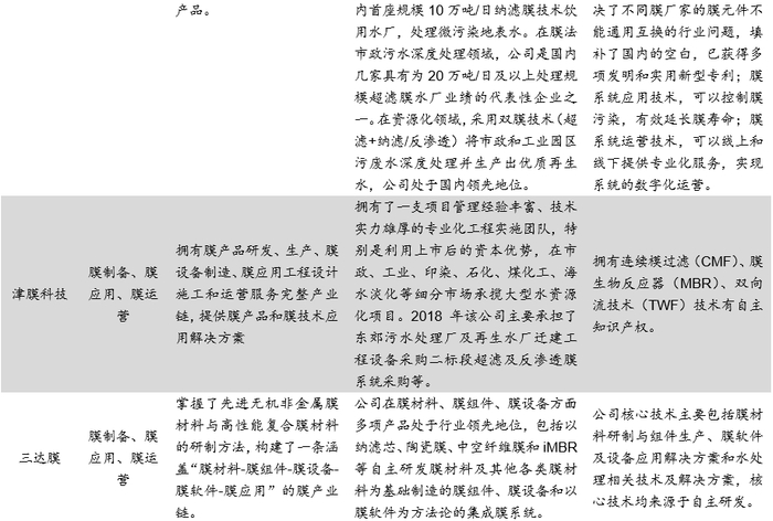 > 膜应用商:不涉及膜制备,主要集中于膜法水处理的工程应用,但一般不包括整体工艺设计及膜装备设计与制造。