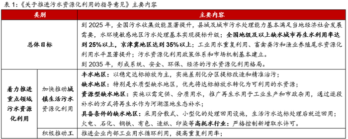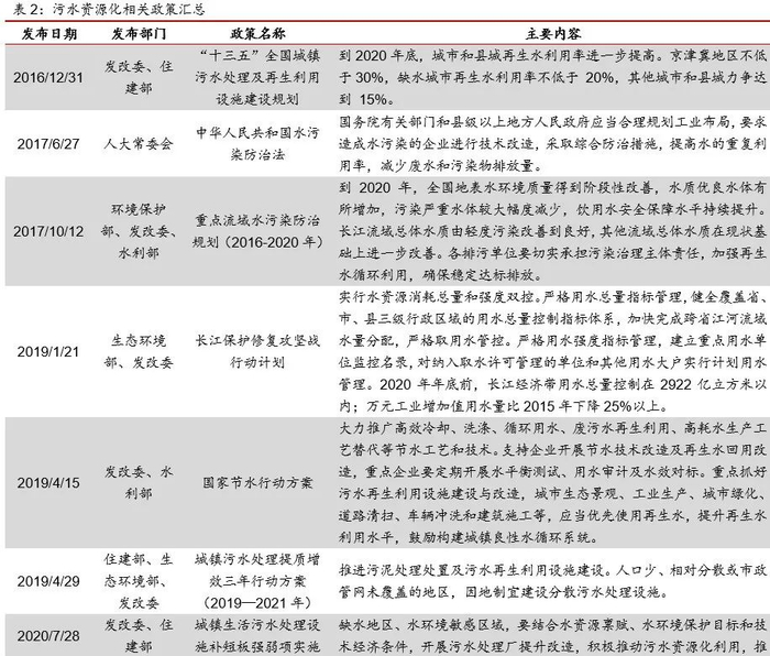 我们认为政策出台将促进城镇生活污水、工业废水及农业农村污水资源化利用产业的发展: