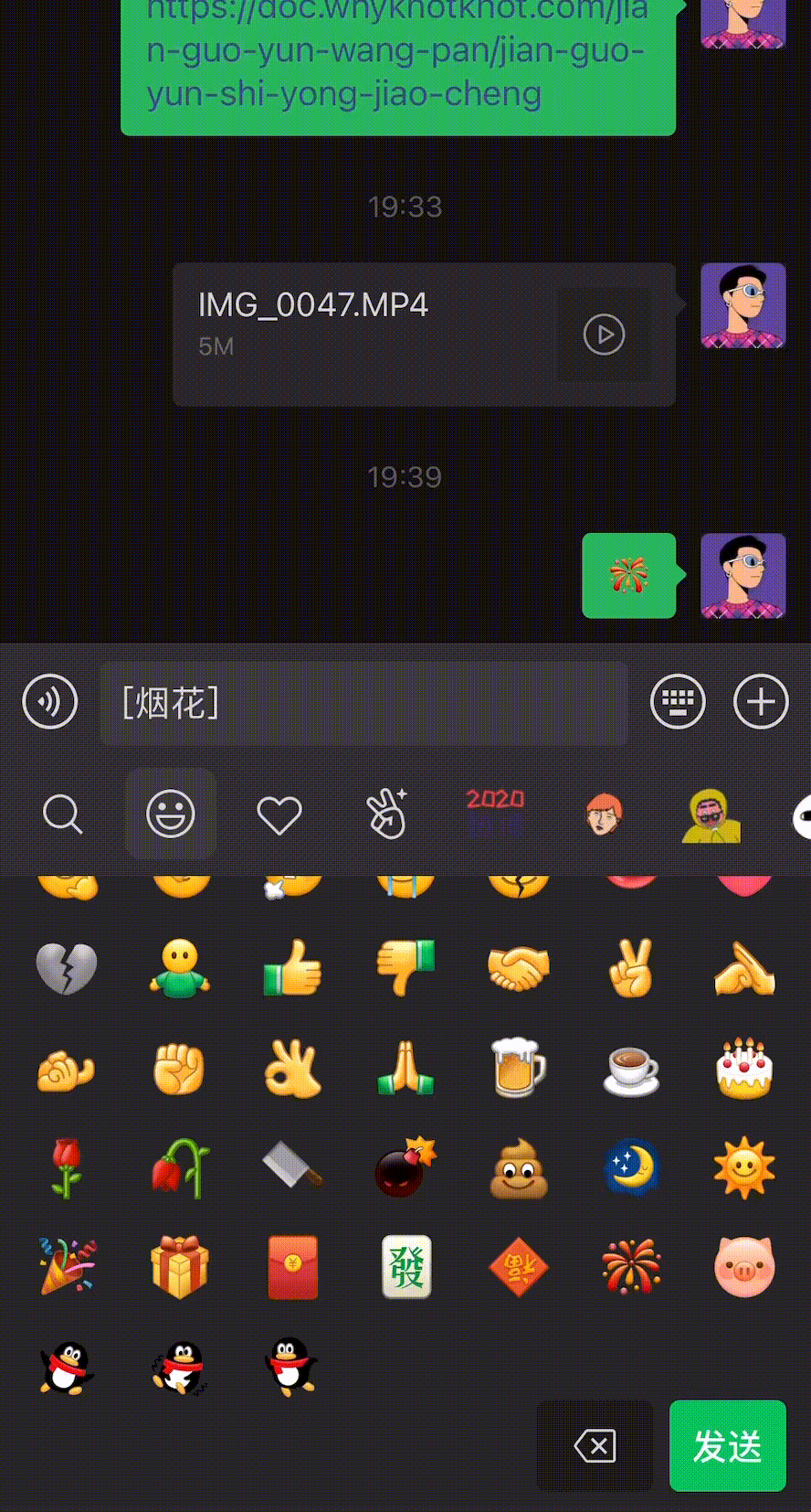 5、新增了自带表情包中特殊表情的全屏动画,比如“庆祝”会满屏放烟花。