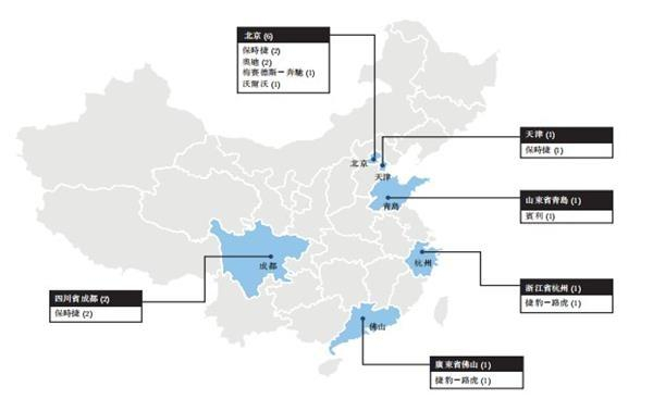 百得利控股在中国六个省市经营12家保时捷、奥迪、梅赛德斯-奔驰、宾利、沃尔沃及美洲虎-路虎品牌的4S经销店,包括北京、天津、山东、四川、浙江及广东。