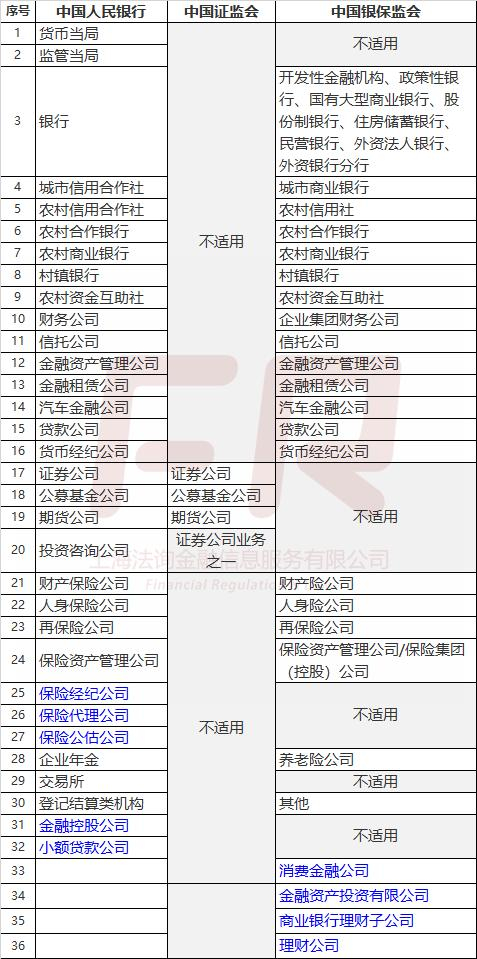 (3)中国证监会“金融机构”完全被中国人民银行“金融机构”范围包含;
