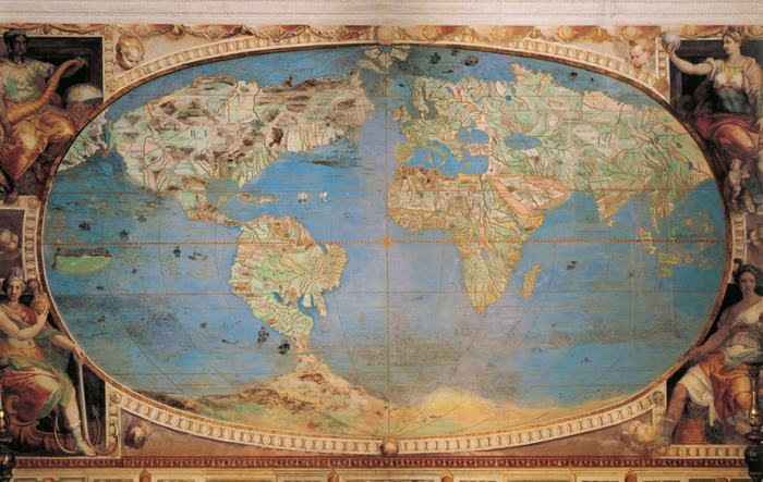 哈特曼·舍德尔《编年史之书》中的世界地图,1493年,手工上色木刻版画,31厘米×44厘米;布林莫尔学院图书馆,宾夕法尼亚州,布林莫尔