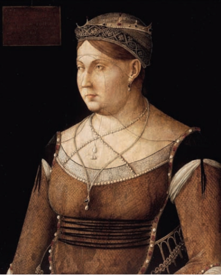 真蒂莱·贝利尼《卡塔里娜﹒科尔纳罗画像》,1500年,木板油画,63厘米×49厘米;美术博物馆,布达佩斯