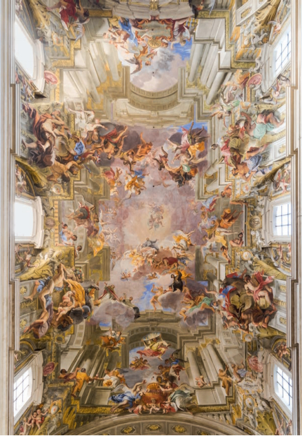 安德烈亚﹒波佐《赞美圣依纳爵》,1691-1694年,天顶湿壁画;圣依纳爵教堂,罗马