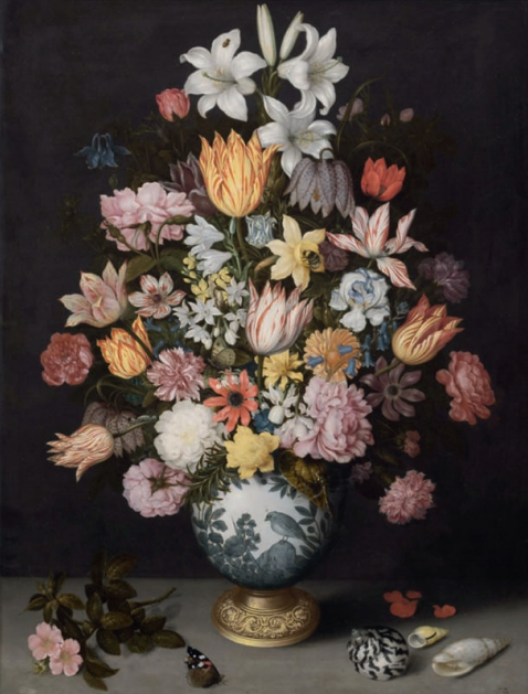 安布罗修斯·博斯舍尔特《万历年制花瓶中的花束》,1609-1610年,铜板油画68.6厘米×50.7厘米;国家美术馆,伦敦