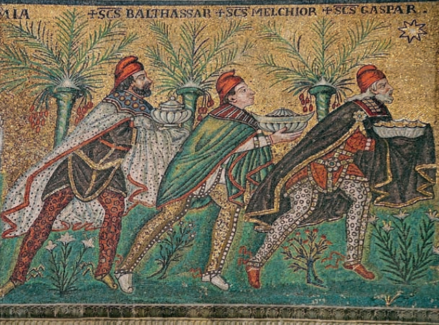 《东方三博士》(The Three Magi,局部),6世纪,镶嵌画,克拉塞的圣亚坡理纳圣殿,拉文纳