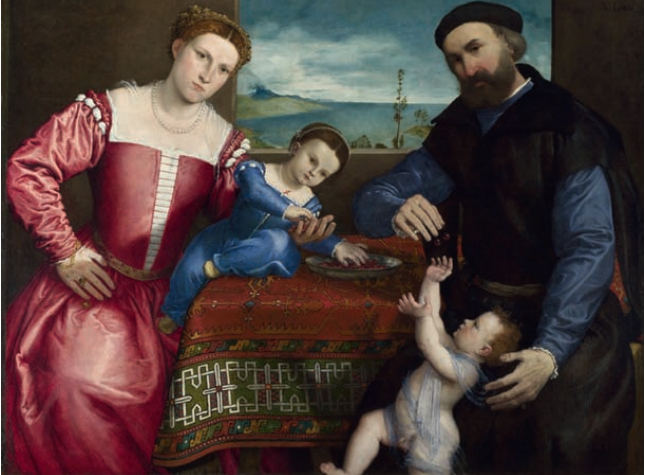 洛伦佐·洛托 《乔瓦尼·德拉沃尔塔和他的家庭》,1547年,布面油画,104.5厘米×138厘米;国家画廊,伦敦