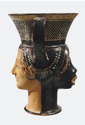 双面双耳高脚杯,公元前6世纪末,彩陶,高19.8厘米;国家伊特鲁里亚博物馆(朱利亚别墅),罗马