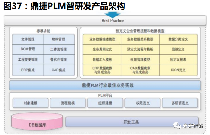 (4)我国PLM厂商发展不及预期。工业软件属于高技术壁垒行业,我国PLM行业相比于国际大厂商起步较晚,技术 优势落后,发展较为缓慢,一旦企业研发没有找对方向,就可能处于技术弱势地位。