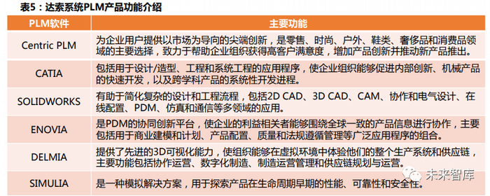 ①以计算机辅助设计(CAD)为主体,代表性厂商有西门子、达索和PTC;
