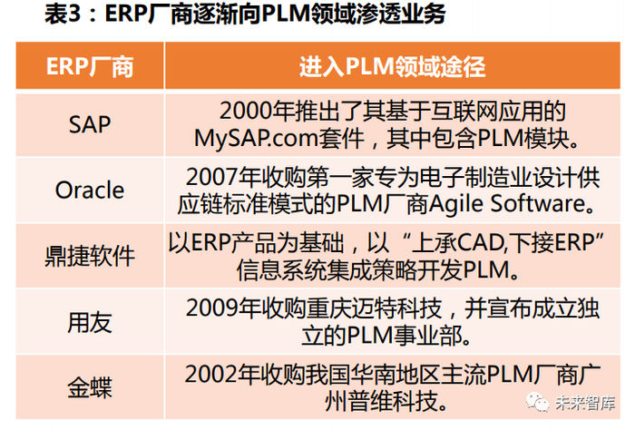 ③以PLM+ERP为主的信息化解决方案提供商,包括用友、甲骨文、SAP等。