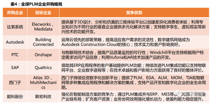 ⚫ 二者并无技术壁垒:相比CAD/PDM厂商,ERP厂商在资源管理与组织协同方面具有更强的竞争能力;PLM 供应商则多提供全面的研发技术组合,包括设计,仿真,产品数据管理和协作技术等。
