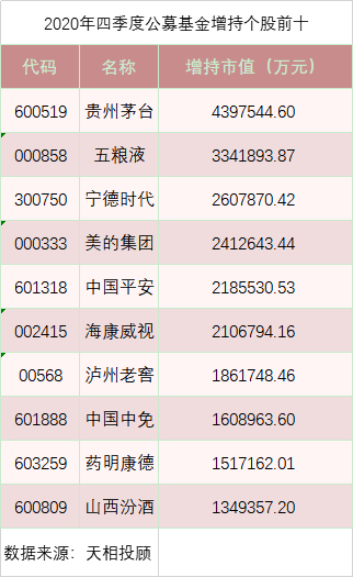 公募基金2020年四季度前十大重仓股