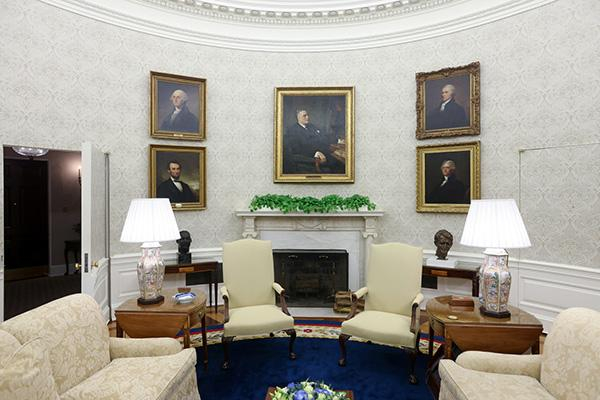 作为美国总统的主要办公地点,白宫椭圆形办公室的陈设往往带有不同总统的个人风格,每位总统上任时都会改变办公室的装饰和摆设。
