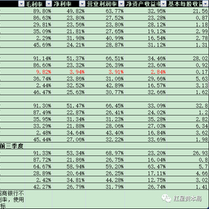 体现上市公司盈利能力的财务指标主要包括毛利率、净利率、营业利润率、净资产收益率、基本每股收益(EPS)等。其中银行业较为特殊,在衡量银行股的盈利能力时,通常会用净利差来代替毛利率。
