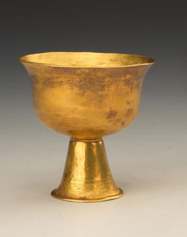元“邓万四郎”款莲生贵子纹高足金杯(局部)