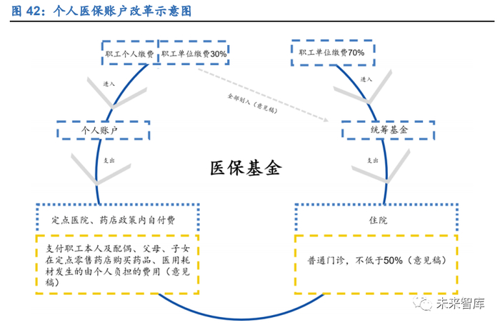 个人医保账户改革,零售药店挑战与机遇并存,连锁龙头长期有望深度受益。8 月 26 日,国家医保局发布了《关于建立健全职工基本医疗保险门诊共济保障机制的指导意 见(征求意见稿)》,门诊报销与个人医保账户出现变化:1)门诊费用纳入统筹金支 付范围,且报销比例从 50%起步;2)职工单位缴费由原本的 30%划入个人账户改为全部划入统筹账户;3)个人账户不再局限于个人,可以为配偶、父母、子女在定点 零售药店购买药品、医用耗材。个人医保账户改革一方面降低了个人账户的整体金额, 职工参保者在定点零售药店的购买力或将减少;另一方面个人账户不再局限于个人, 激活了部分躺在个人帐户里的钱。个人账户改革或将带来医保资格的存量洗牌,中小 连锁及单体药店经营监管压力相对更大,大型连锁药店依托优秀的内生能力及资本 整合平台,有望受益于行业出清带来的集中度提升,实现规模快速扩张。
