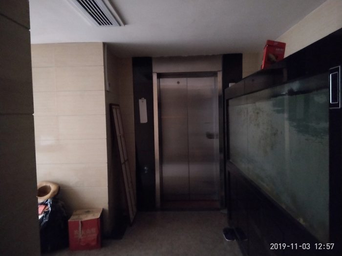 上海红楼的一楼电梯口,装修低调而普通,电梯口外没有安装摄像头。进大门后迎面放了一个大型观赏鱼缸。该门外电梯无密码及刷卡装置。因已断电,无法确认进电梯后,是否需要门卡或密码才能启动电梯或按亮所达楼梯按钮。据附近居民称,没有门卡或密码,无法进入该楼。 《等深线》记者 程维 摄