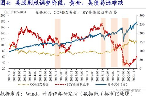 (1)黄金、美债等能成为优质避险资产,缘于能够对冲风险偏好回落,并具备低波动率、高流动性、大市值等特征。与风险资产相比,黄金等避险资产的“避险属性”主要体现在能够对冲风险偏好回落。例如,美股剧烈调整时,黄金、美债往往迎来价格上涨。避险资产中,波动率越低、流动性越高、市值越大,资产质量越优质。