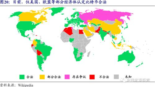 长期而言,比特币能否真正成为全球性“保值货币”,与数字货币的发展、监管政策的变化等密切相关。比特币作为一种加密私人货币,虽然可用于对冲一国货币滥发或支付系统崩溃等风险,但核心价值仅来源于公众认为它可以用来换取商品、服务及美元等法定货币。未来会否出现比比特币更安全、更稀缺,并有国家主权背书的法定数字货币,值得重点关注。近年来,已经有越来越多的央行开始积极参与到法定数字货币的研究中。与此同时,对于比特币而言,能否真正成为全球性的保值货币,还与各国监管政策的发展密切相关。截至目前,大部分国家依然禁止比特币流通、交易。