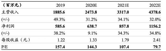公司原料业务增长、医疗终端产品业务20年疫情下经历回调21年有望恢复增长,功能性护肤品业务旗下润百颜/夸迪/米蓓尔受益产品过硬及有效宣传投入下品牌认知度提升有望保持高速增长,作为食品原料获批也为原料及终端产品业务打开新空间,我们预期公司20/21/22年收入同比增长31.2%/34.1%/32.0%至24.7/33.2/43.8亿元,归母净利同增9%/34%/35%至6.4/8.6/11.6亿元,对应PE 144/107/80X,公司在透明质酸领域保持全球龙头地位,研发创新引领市场,储备产品丰富,坚定看好长期发展潜力,维持“买入”评级。